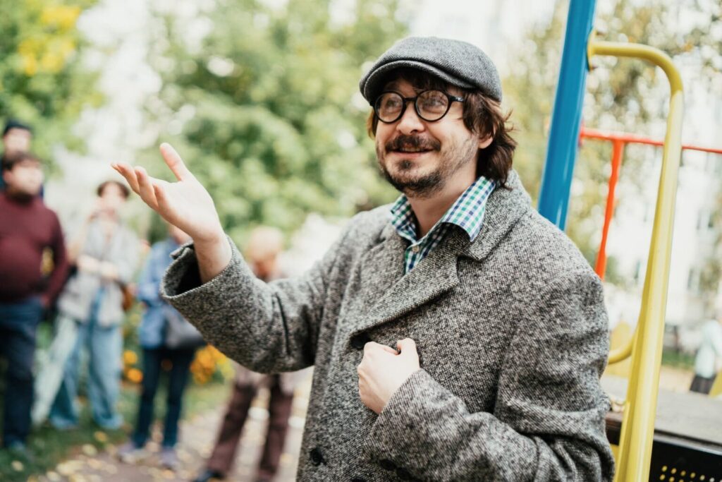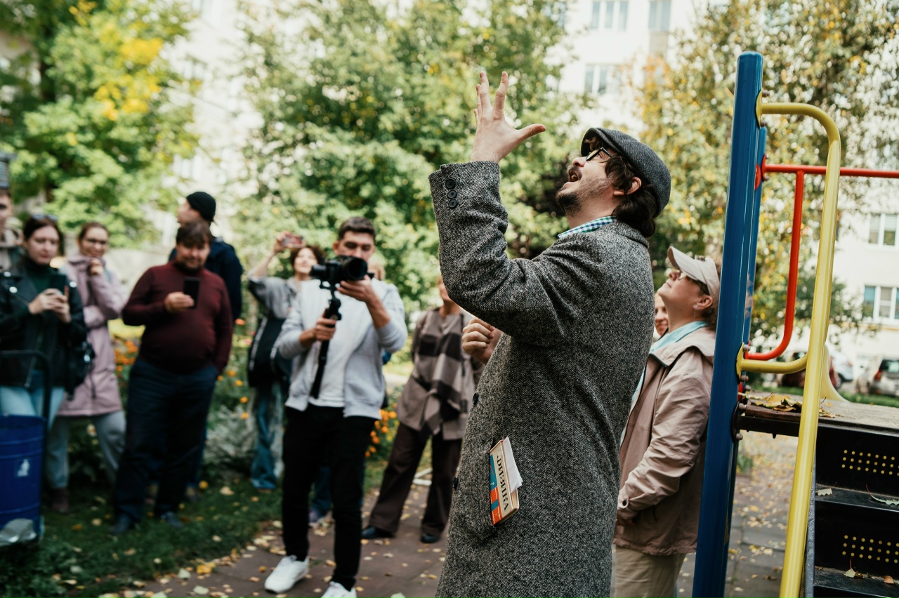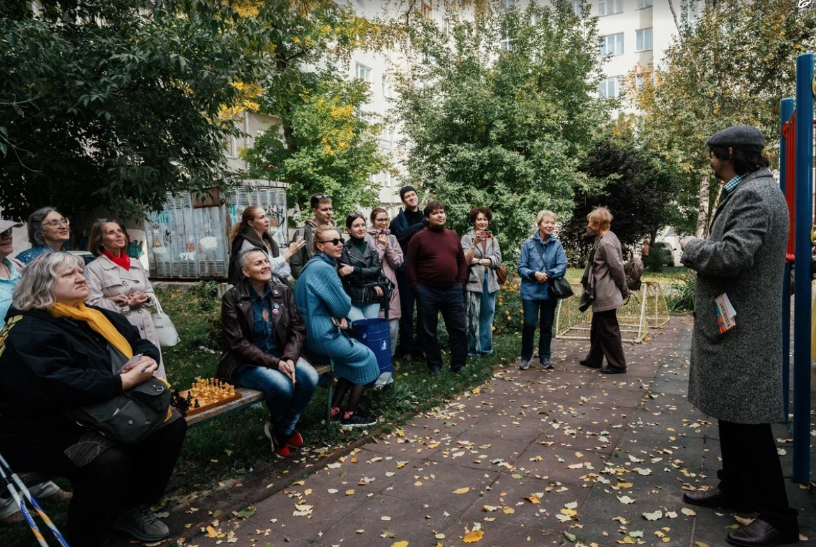 В 2025 году экскурсия по еврейскому Екатеринбургу стала театральной. У дома специалистов Востокстали участников экскурсии встретил «житель» (актер Открытого Студийного Театра Евгений Исхаков).