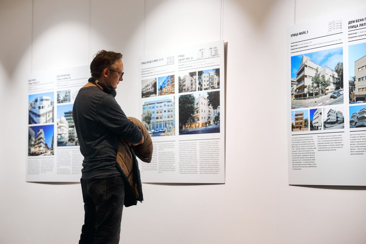 Соучредитель Баухаус-Центра в Тель-Авиве д-р Миха Гросс открыл выставку в Ельцин Центре и провел по ней кураторскую экскурсию. Эксперт предположил, что конструктивизм Екатеринбурга повлиял на архитекторов, которые проектировали здания в стиле баухаус в Израиле.