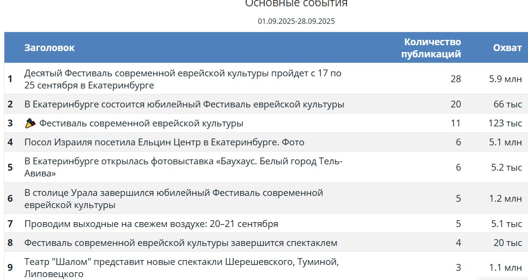 охват публикаций в СМИ о Фестивале современной еврейской культуры