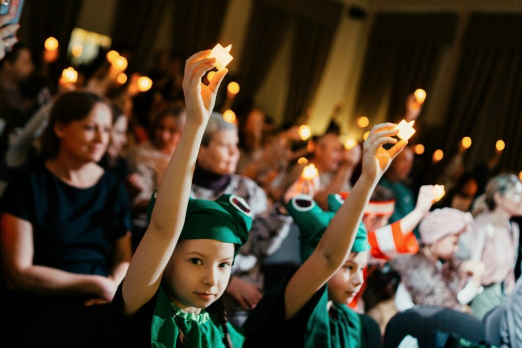 Дети и взрослые — представители разных общин — самостоятельно выбрали истории для постановки. Все сказки объединяет тема света: она и стала лейтмотивом программы.