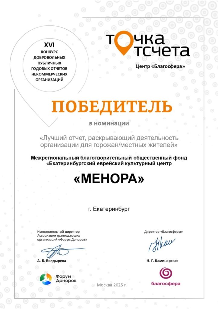 Также ресурсный центр фонда «Менора» в 2025 году: